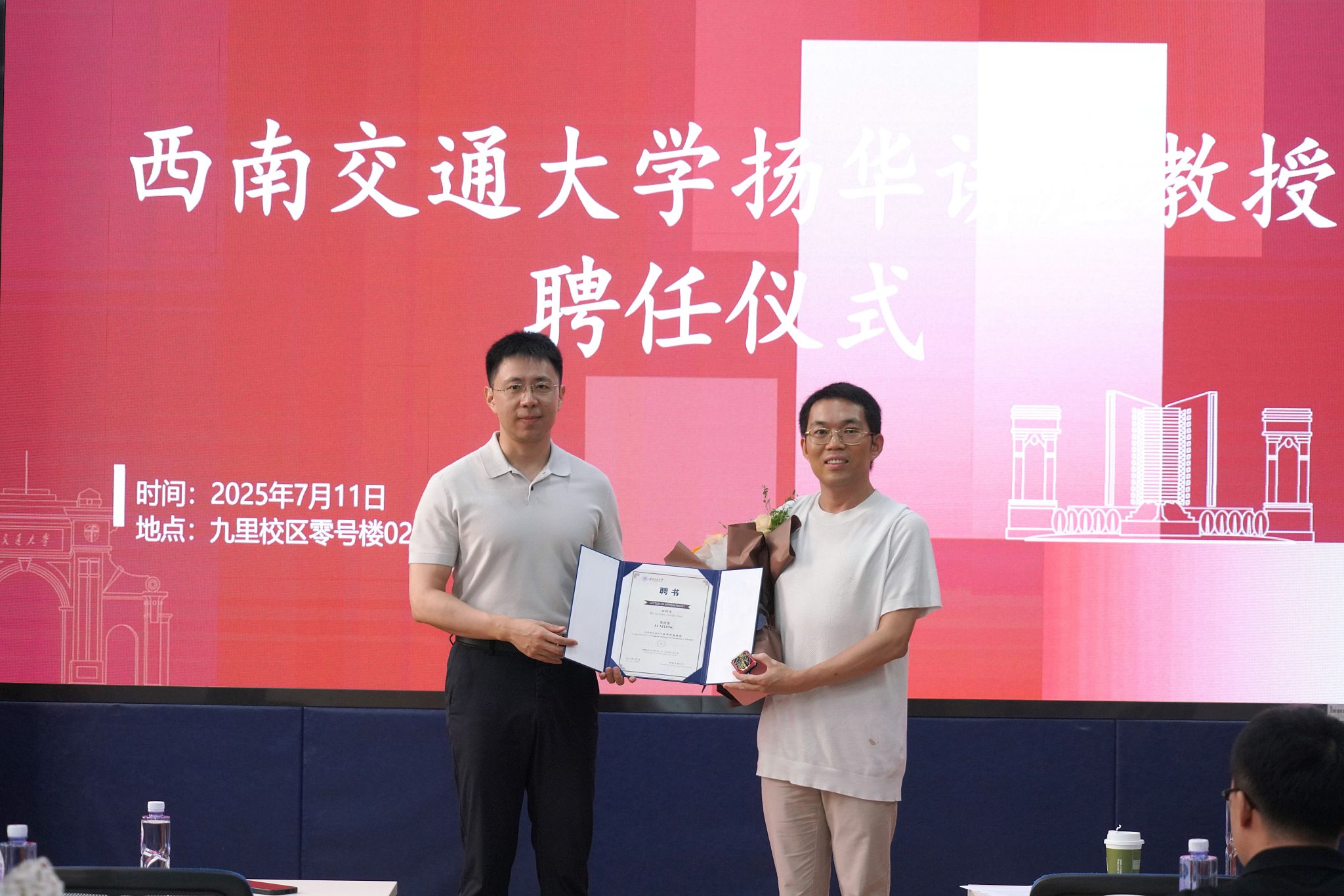 院长韩科教授首先介绍了李喜彤教授的学术背景与成就,并对李教授加入我校表示热烈欢迎。随后,韩科院长为李喜彤教授颁发了西南交通大学扬华讲座教授聘书。