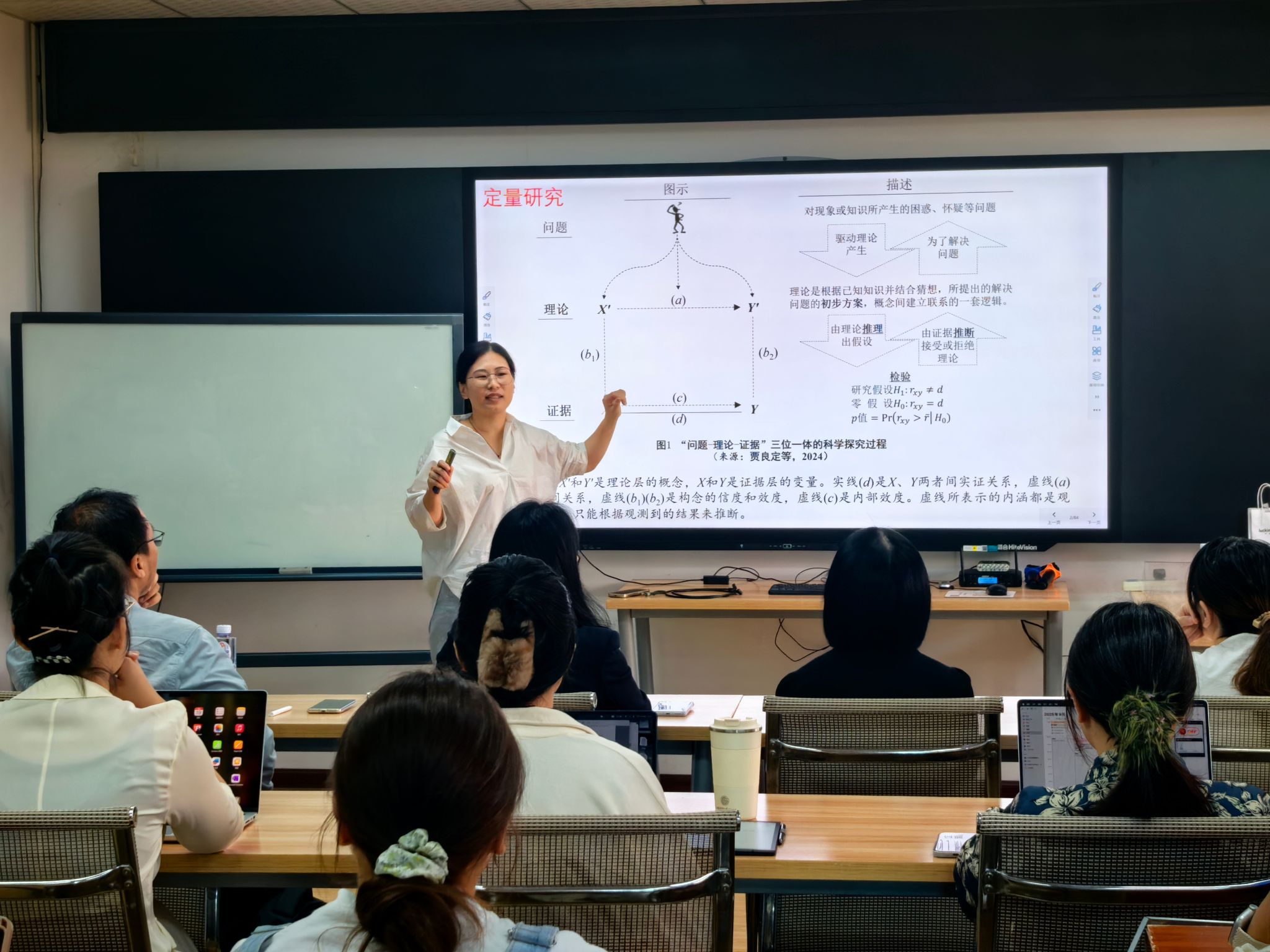 在讲座中,卢老师首先介绍了案例研究的基本范式和假设,探讨了如何通过案例研究构建中国特色的创新理论。她详细讲解了实证主义案例研究、诠释主义案例研究和补充性解释案例研究三种不同的研究设计,并分析了它们的适用情境及实际应用中的示例论文。卢老师特别提到,不同的研究设计方法可以为学术界提供更为丰富的理论视角,并帮助学者们更好地解决复杂的企业管理问题。