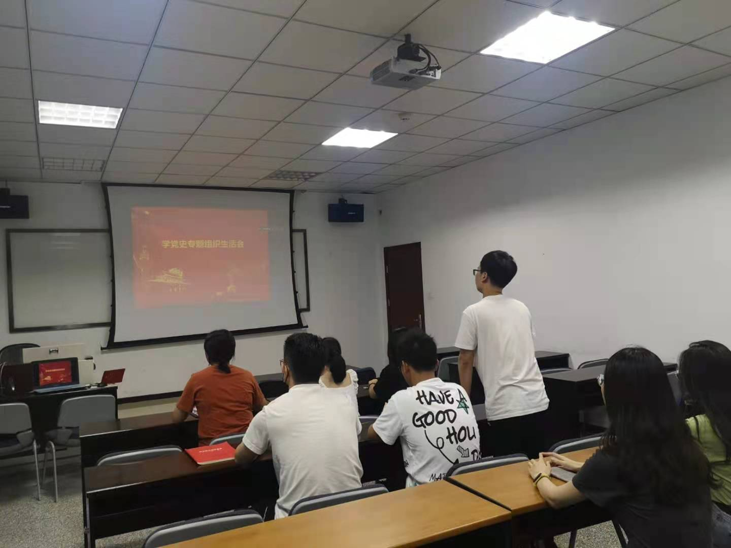 硕士2019级第六党支部于2021年7月1日晚7:00-9:00在0317教室组织召开了党史学习教育专题组织生活会。支部党员和预备党员参加了会议,会议由宋俊佑同志主持。