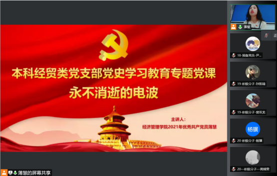 2021年优秀党员、本科经贸类党支部副书记薄慧,支部的全体党员、预备党员、积极分子共计100多人参加了专题学习会议。