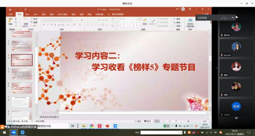 专题组织生活会的第二个学习内容为学习收看《榜样5》专题节目。专题节目通过典型事迹再现、嘉宾现场访谈、诗朗诵、重温入党誓词等形式,展现了积极投身疫情防控工作的共产党员不忘初心、牢记使命、敢于斗争、敢于胜利的大无畏气概,彰显了基层党组织战斗堡垒作用和党员先锋模范作用,诠释了生命至上、举国同心、舍生忘死、尊重科学、命运与共的伟大抗疫精神,是开展党员教育的生动教材。支部同志共同观看了《榜样5》专题节目的部分视频,并交流了观后感言。