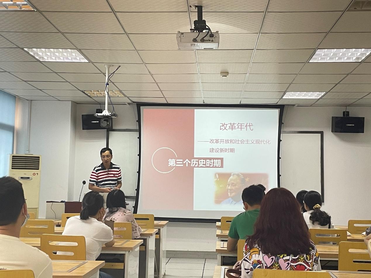 首先,叶老师以会计“新收入准则”中收入的确认从所有权转移改为控制权转移为例,指出学习专业知识先得明“理”,才能更好地理解其背后的深意,并点出我们学习党史也是一样的。紧接着,叶勇老师向大家介绍了建党百年以来的多个重要历史时期,其中,着重讲解了“改革开放”这一段历史。1978年,中共中央十一届三中全会在北京召开,确立了解放思想、实事求是的思想路线,停止“以阶级斗争为纲”的口号,作出把党和国家的工作重心转移到经济建设上来,实行改革开放的伟大决策,形成了以邓小平为核心的党中央领导集体。叶老师从对内改革及对外开放两方面分别进行了讲述,指出改革开放是近代以来实现中华民族伟大复兴的三大里程碑之一,并用自己在那个时期的亲身经历和感悟让我们对改革开放有了更深入的了解。
