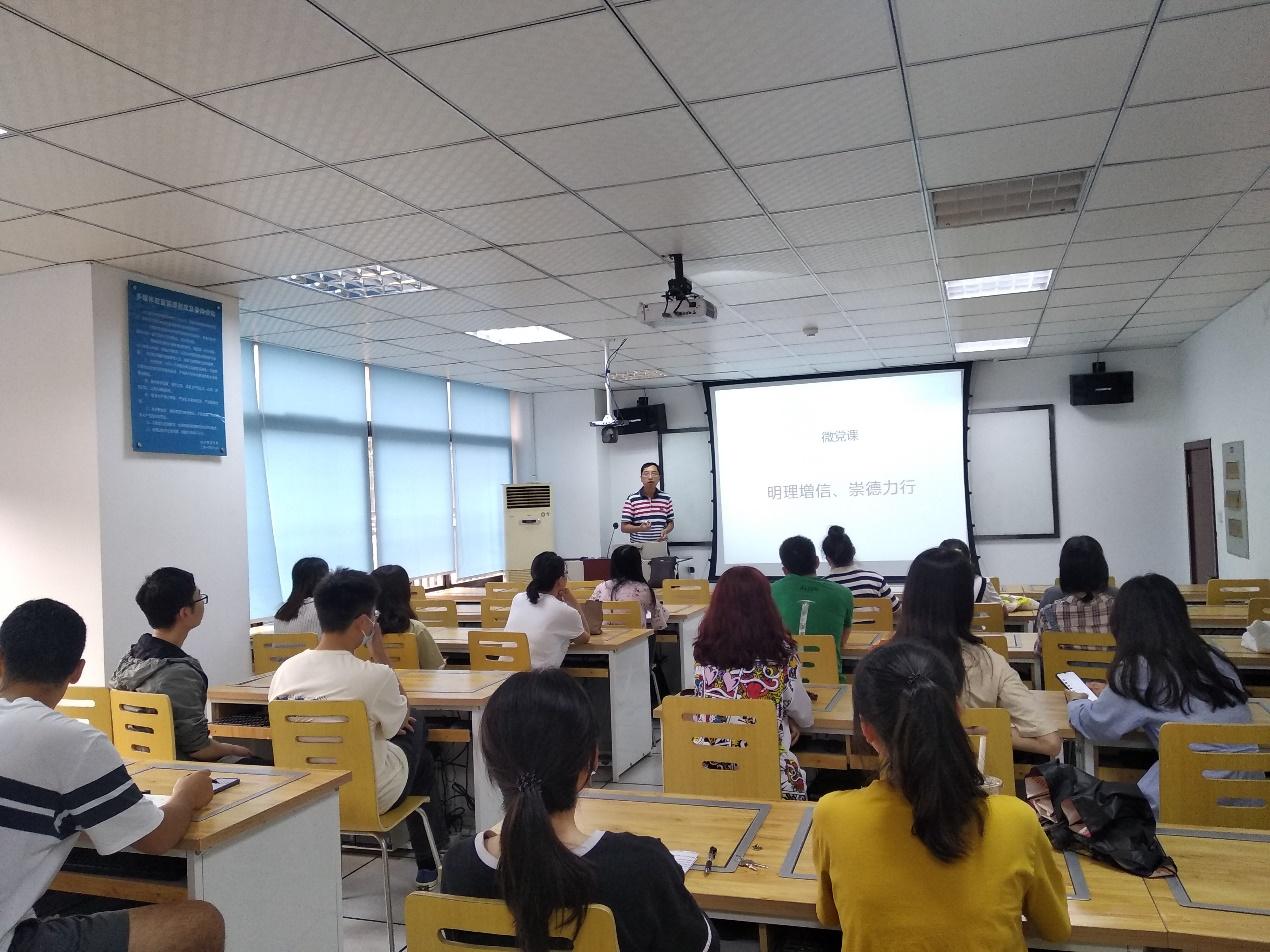 为贯彻落实习近平总书记在党史学习教育动员大会上的重要讲话精神,深入开展四史学习教育,夯实党建工作,引领支部党员以高度的政治自觉、思想自觉和行动自觉,积极参与到党史学习教育之中。2021年6月9日下午两点,在零号教学楼0302教室,硕士2019级第一党支部联合硕士2019级第六党支部和2017级博士党支部邀请叶勇老师为我们上了一堂主题为“明理增信、崇德力行”的微党课。