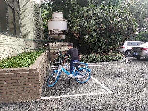 硕士2020级第一党支部于16:30分来到西南交通大学九里校区0号教学楼楼下,将乱停乱放、摆放不到位的共享单车移动至学校划分的停车位内,摆放整齐。