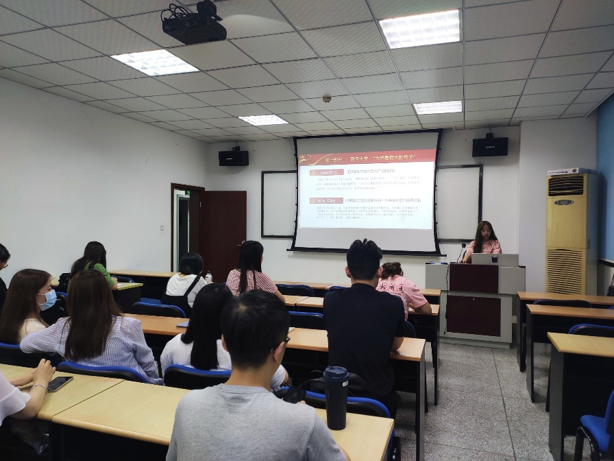 硕士2020级第一党支部于2021年6月9日(星期三)21时00分,在九里校区0304教室,开展了主题为“百年恰是风华正茂”的建党100周年专题党性教育党课。本次会议由支部书记罗琴同志主讲,支部内党员、积极分子参会。