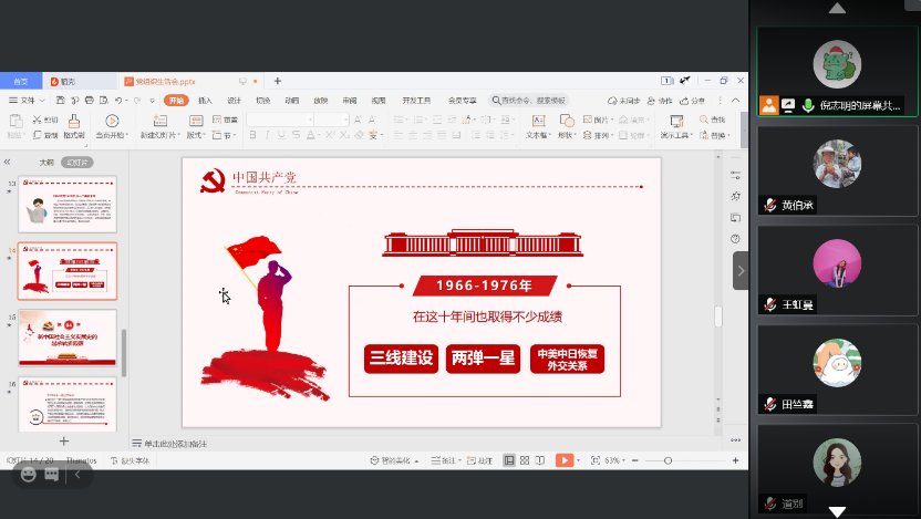 硕士2018级第六党支部专题组织生活会采取线上的方式,在腾讯会议召开。会议由党支部组织委员倪志明同志主讲,硕士2018级第六党支部全体党员参会。会议围绕主题“四史”学习教育之新中国社会主义发展史进行了学习和探讨。