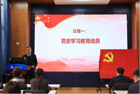 党委书记王斌同志带领大家学习了习近平总书记在党史学习教育动员大会上的重要讲话精神,并传达了学校党史学习教育动员部署大会精神。