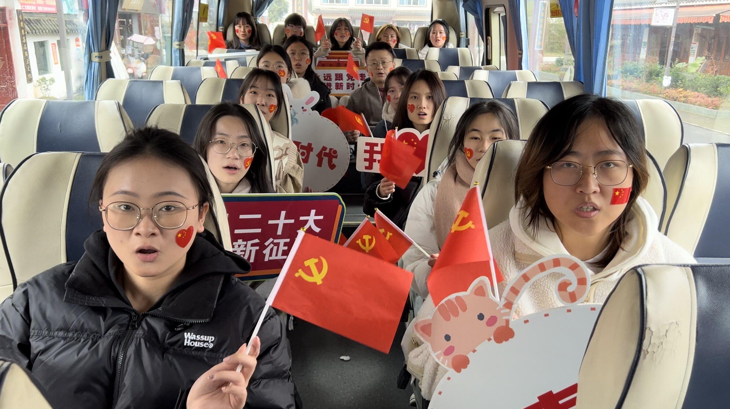 早上8点,全体党员佩戴党员徽章,怀着对革命烈士的敬意启程。“岁月易流转,党魂永存心”,行驶途中,大家重温红色歌曲,传唱经典旋律,用嘹亮歌声彰显着青年党员爱党爱国的热情。一首《没有共产党就没有新中国》将气氛推向高潮。挥舞的国旗、微笑的脸庞、振动的音符、流淌的红歌,让党支部成员从内心深处感受到革命的力量和祖国的强盛,激发起烽火岁月的澎湃激情,坚定了只有中国共产党才能带领中华民族走向伟大复兴的信心和决心。
