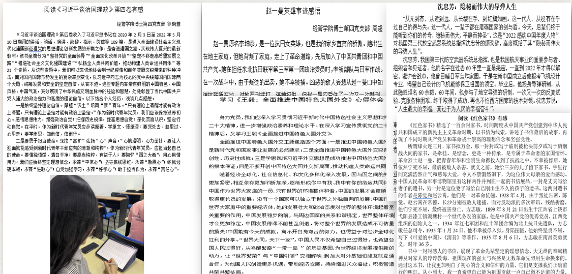 博士第四党支部组织了两期“读红色经典,忆初心强党性”党员读书班活动。每位党员同志都以积极饱满地态度参与了进来,并写下了心得体会。活动最后,由党支部书记对本次的分享交流会做出了总结和点评。
