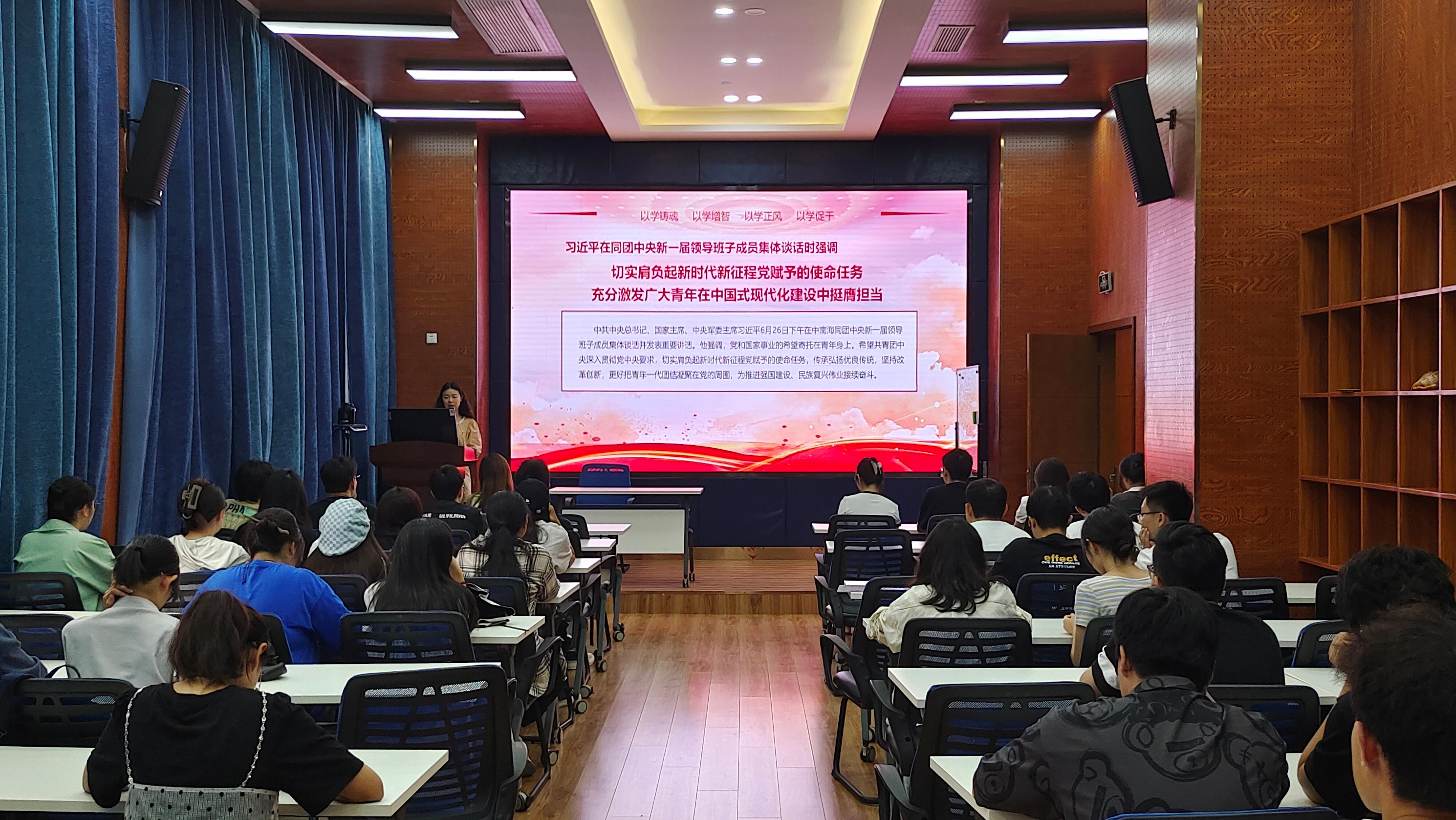 第一部分,张先凌同志带领支部成员学习了习近平总书记6月26日下午在中南海同团中央新一届领导班子成员集体谈话并发表重要讲话的内容。在场成员切实地感受到党的十八大以来,党的青年工作获得的重大成就与发生的深刻变革。通过支部书记张先凌的讲解,党员和积极分子们作为青年的一份子,再次深刻体会了青年一代被寄予的厚望,明确了肩负的使命任务。讲话内容为支部成员指明了前进方向,激励他们牢固树立共产主义远大理想、坚定中国特色社会主义共同思想,坚定不移听党话、跟党走,为祖国和人民不懈奋斗。