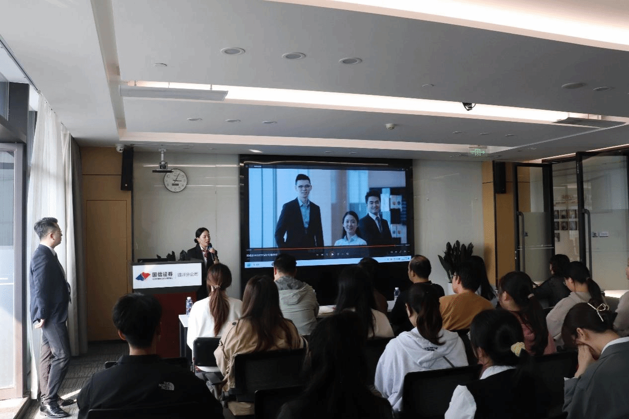 茶歇过后,国信证券针对师生所需分别开设了教师和学生专场进行分享交流。在学生专场,国信证券的陶波经理为同学们介绍了证券行业的特点、就业市场的人才需求等,旨在培养和提高大家的职场意识与能力。在教师专场则举行交流座谈会,国信证券的何启彬总经理向大家更加详细地介绍了易游体育、发展前景、党建内容等,以及对易游体育