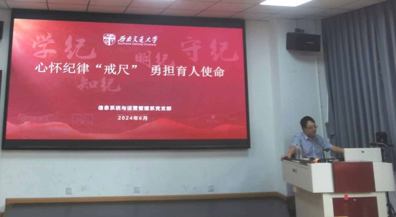 2024年6月27日下午2点,信息系统与运营管理系党支部在九里校区J0318教室开展了党纪学习教育专题教育。党支部书记刘盾同志主持并讲授党课,易游体育