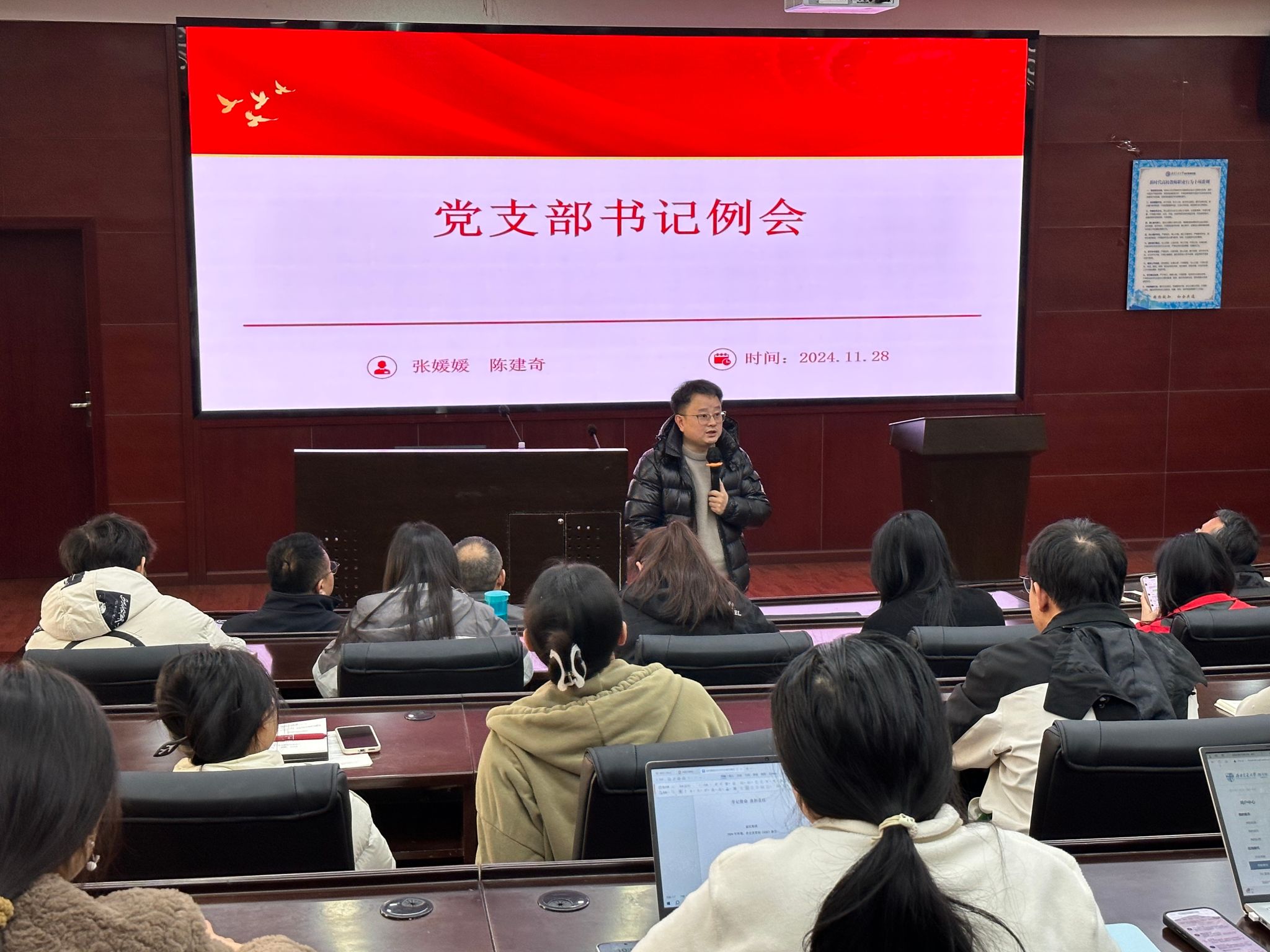 党委书记郭强、副书记晏理斌、党委组织员以及师生党支部书记30余人参加了会议。会议由组织员张媛媛主持。会议布置了近期党支部工作,并就主题党日活动的开展、党支部工作的总结、党支部转入转出党员的清理等进行了交流讨论。会议指出,党支部主题党日制度是党的组织生活中重要的一项制度,是党员与党组织之间密切联系的纽带, 各党支部要明确主题党日活动主题,确保每次活动有实质内容、有实际效果。会议同时强调了梳理党支部党员组织关系和党员基本信息的严肃性、重要性,提醒党支部做好年度总结工作。