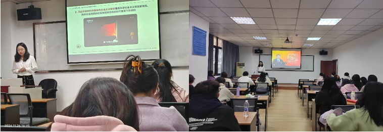2024年11月26日,支部书记王碧璇为会计专硕全体同学开展了学习习近平新时代中国特色社会主义思想微党课,王碧璇同志围绕习近平新时代中国特色社会主义思想的核心要义、时代背景和实践要求等方面进行讲解,分析得出习近平新时代中国特色社会主义思想是党和国家必须长期坚持的指导思想。同志们表示,要将学习成果转化为推动学习工作的强大动力,不断提高自身专业能力和综合素质,为学校和社会的繁荣发展添砖加瓦。