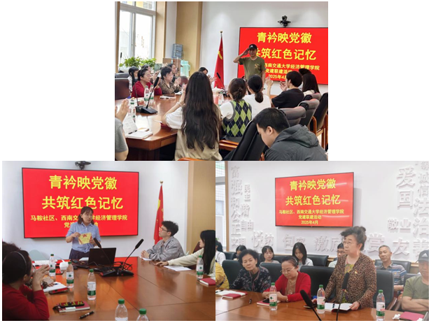 经济学硕士第一党支部、工业工程与管理专硕第一党支部、管理科学与工程硕士第一党支部的党员及入党积极分子走进马鞍社区,与马鞍社区党委联合举办“青衿映党徽,共筑红色记忆”党建共建活动,活动在金牛区驷马桥街道马鞍小学一楼会议室顺利开展。
