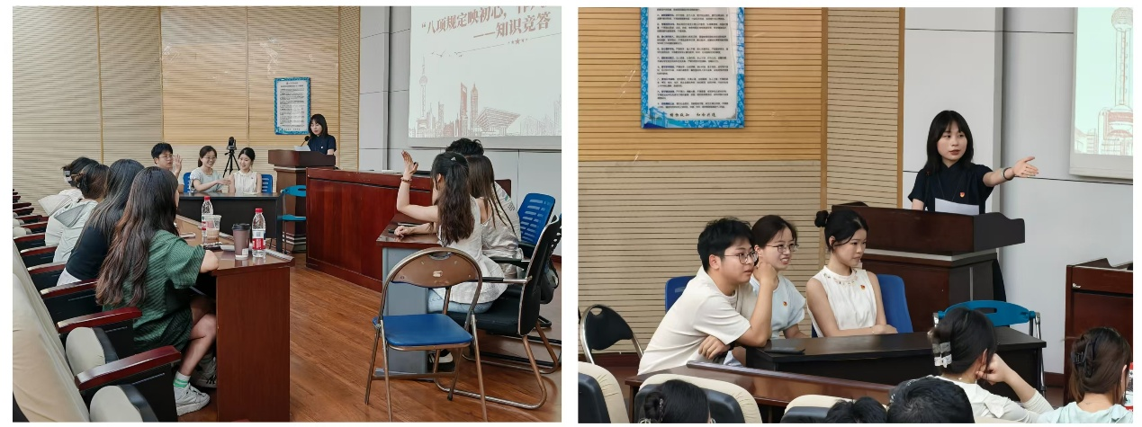 6月12日下午,“八项规定映初心,作风建设青年行”之“趣味研学”系列活动在九里0215会议室举行。此次活动分为知识竞答、辩论赛与情景剧演练三大环节。来自三个支部的六位党员同学组成两支队伍,围绕中央八项规定精神相关主题展开紧张激烈的知识抢答,有效增强党员同志们对中央八项规定精神的理解和认同。