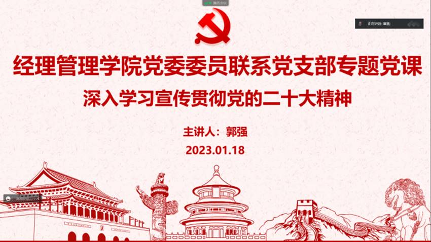 2023年1月18日下午,易游体育官方网站 党委委员郭强带领易游体育 工程管理系党支部、本科第一党支部、硕士2021级第五党支部以及博士研究生第四党支部开展了以深入学习宣传贯彻党的二十大精神和学校第十五次党代会精神为主题的党课。党课中,郭强首先介绍了中国共产党第二十次全国代表大会召开的意义、提出的任...