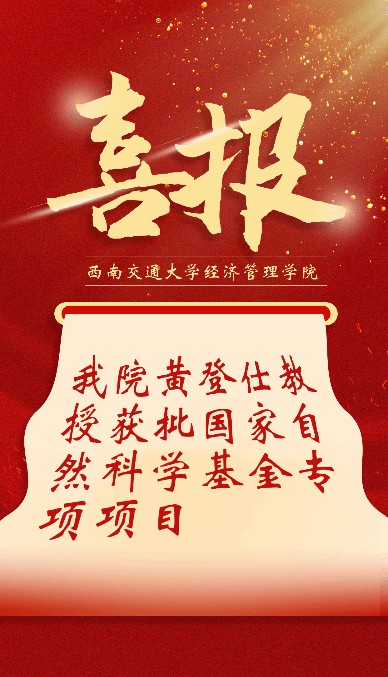 【科研】喜报!易游体育 黄登仕教授获批国家自然科学基金专项项目