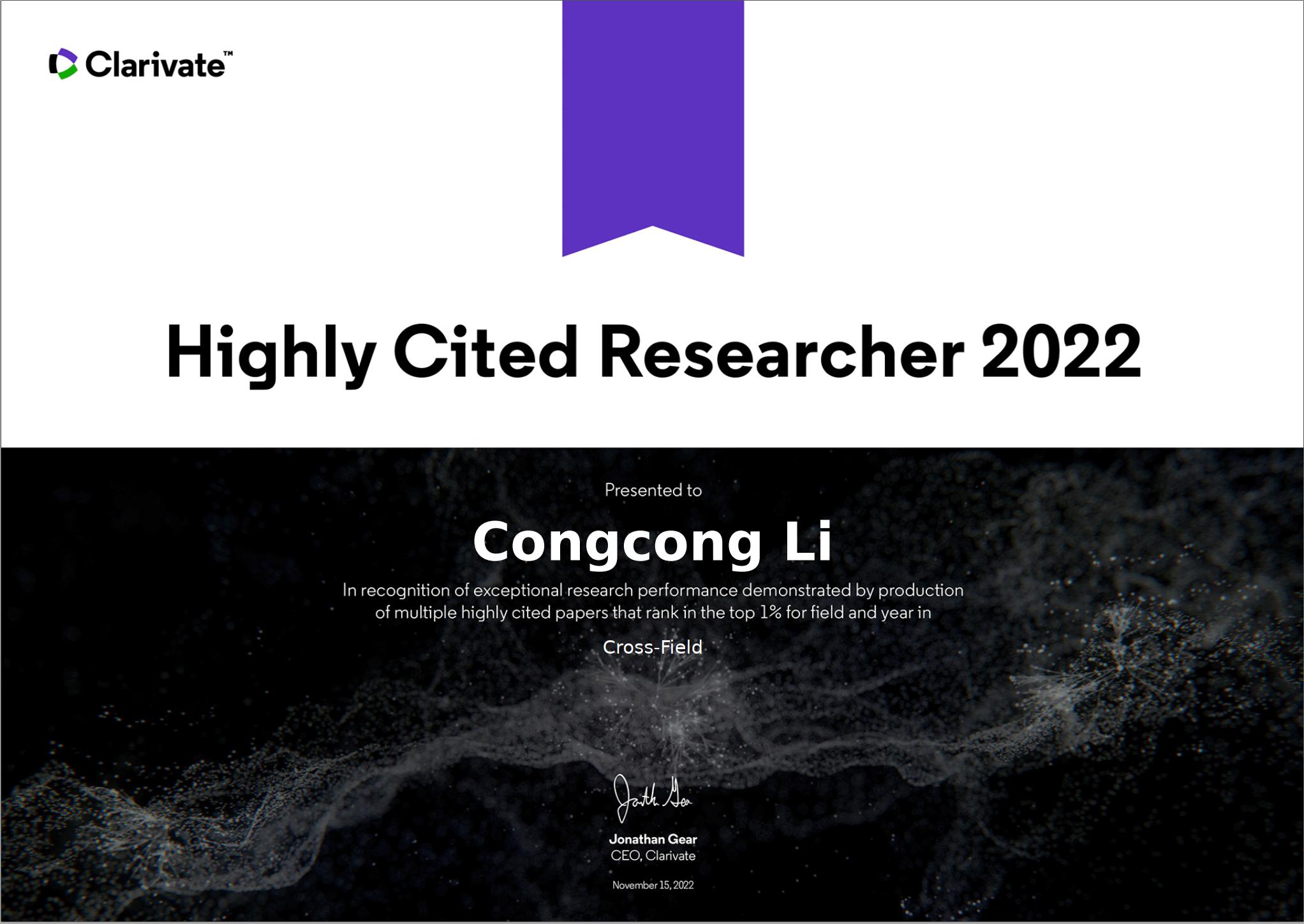 【科研】热烈祝贺易游体育 李聪聪老师入选2022全球高被引科学家榜单